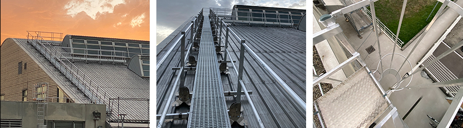 Cette toiture a été équipée d’un ensemble de 3 passerelles de circulation, antidérapantes, sécurisées par du garde-corps MAK-BS.