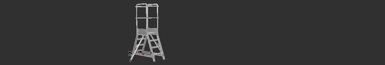 Plate-forme roulante, double accès. Sécurité optimale pour faire face à tous vos travaux sur chantier, le spécial "banche" est pratique et ingénieux. Existe de 3 à 10 marches pour desservir des hauteurs de travail de 2,70 à 4,33 mètres et en 3 longueurs de plate forme : 550 - 1105 et 1656 mm. Exemples d’utilisation : Travaux de traçage sur banche, travaux de ferraillage sur banche, travaux de nettoyage sur banche…