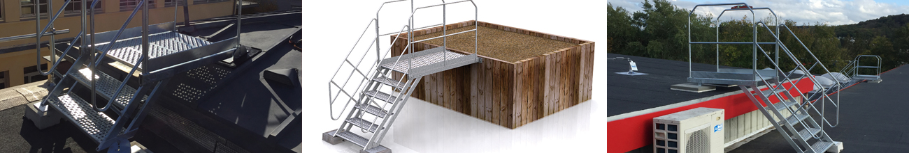 Saut de loup avec palier, en acier galvanisé. Équipement aux normes en vigueurs (certifié par les bureaux de contrôles).